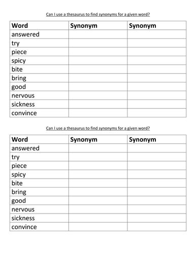 Synonyms Worksheets. Home > English Language Arts Worksheets > Synonyms. Our synonyms worksheets are free to download and easy to access in PDF format.